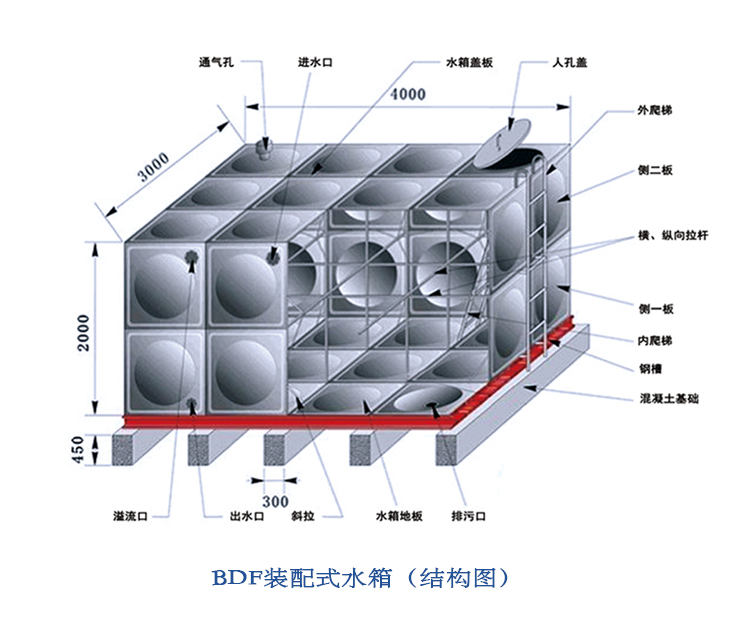 ,耐腐蝕性強、抗震性能好、便于運輸、無需大型吊裝設備,不同均可現場組裝; 清潔衛生,與傳統水箱相比,耗材較少,結構強度較高,可真正做到百年不壞,是水箱界的新潮流; 冷熱多用可提供較理想的保溫裝置。 提供拼裝水箱不銹鋼拉筋組裝和焊接的技術指導。